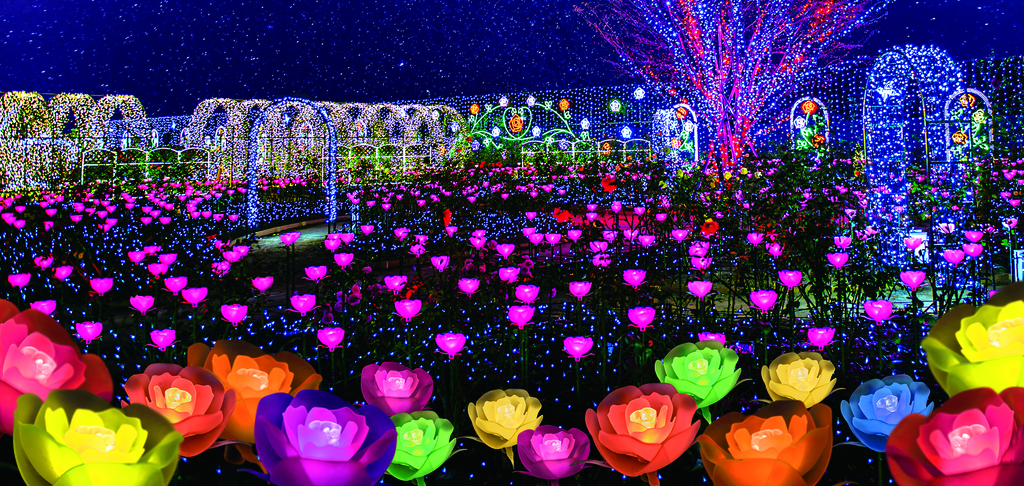 In the evening the illuminated wisterias bring dream-like scenes. The park also draws large crowds during the fall and winter months, when the “Bejeweled Flower Garden” is held. It is one of the Kanto area’s top three annual illumination events. The garden welcomes over a million tourists throughout the year.